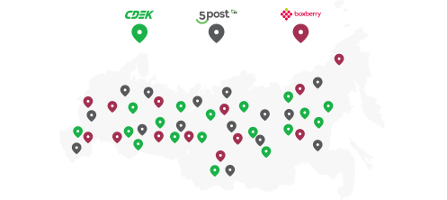 СДЭК, 5 Post и Boxberry — выбирайте удобный пункт самовывоза рядом с домом или работой.